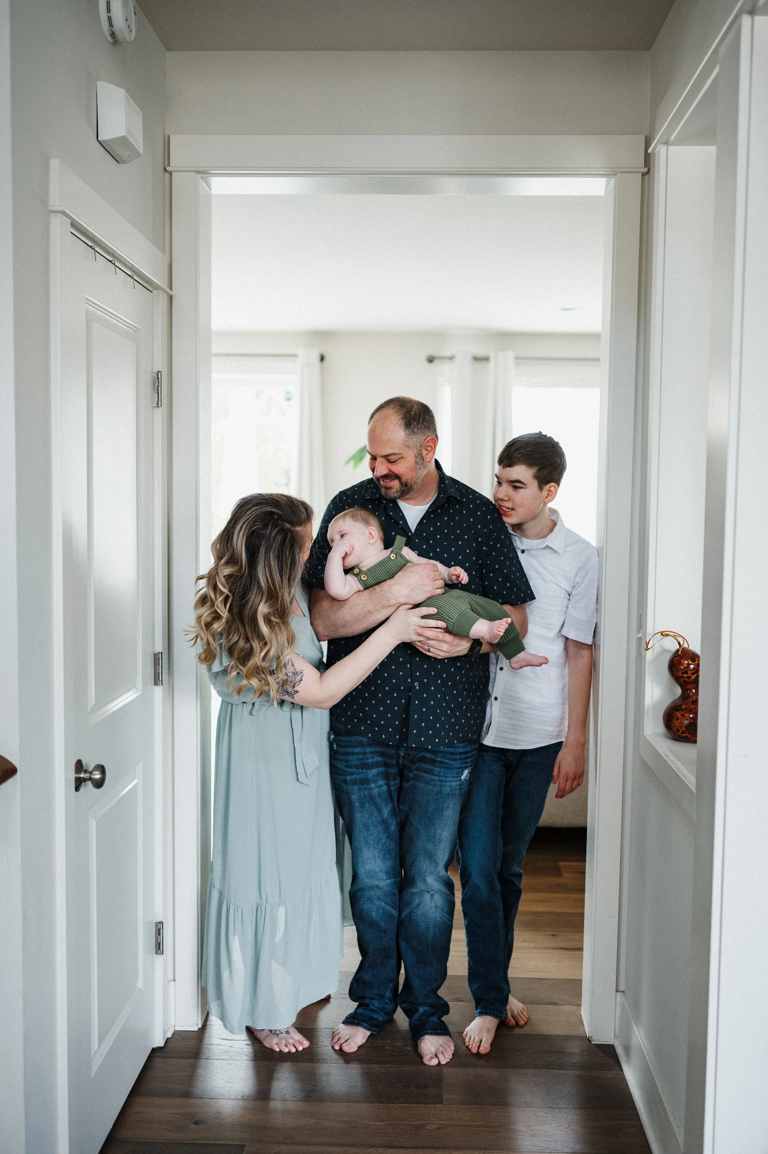 What should you wear to your in home session? I recommend that all family members are barefoot. I will have you sit on your bed, or snuggle on the couch, places where you wouldn’t normally wear shoes. It’s also easier for you that way because it’s one less thing to worry about! I have an online styling service for all my families and you are more than welcome to use it to pull together outfits. You can be as casual or as dressed up as you like. The most important thing is that you’re comfortable!